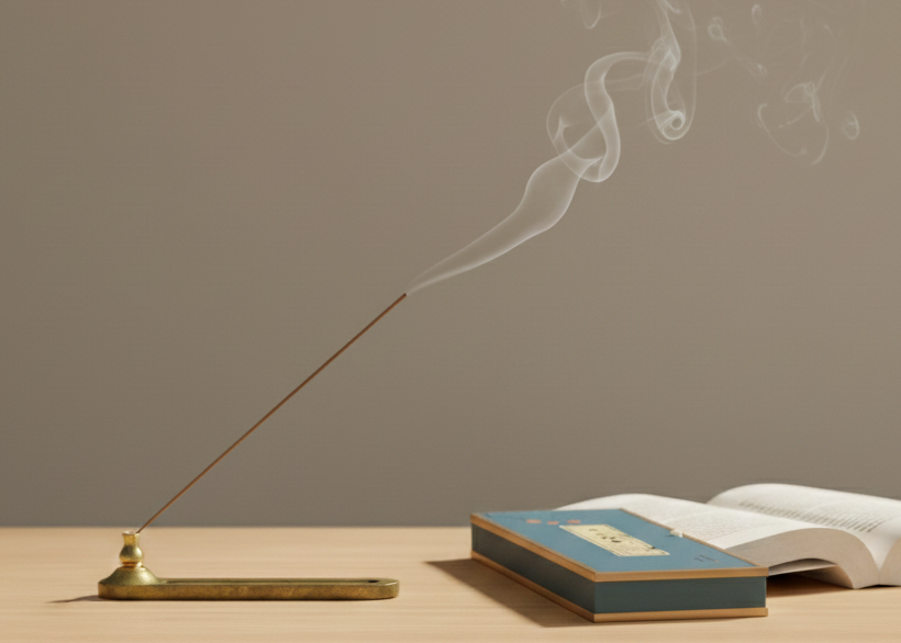 Paired with a minimalist incense holder.