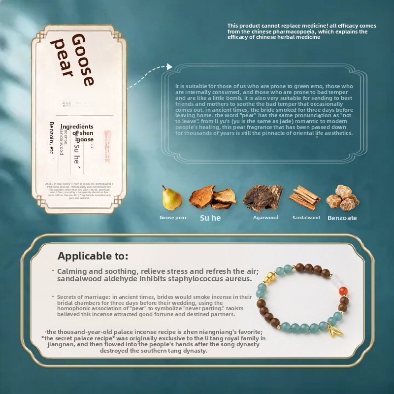 Pear Tent Fragrance Traditional Chinese Medicine Hexiang Bead Bracelet New Chinese Natural Blue Water Jade Gourd Passepartout Medicinal Fragrance Bracelet