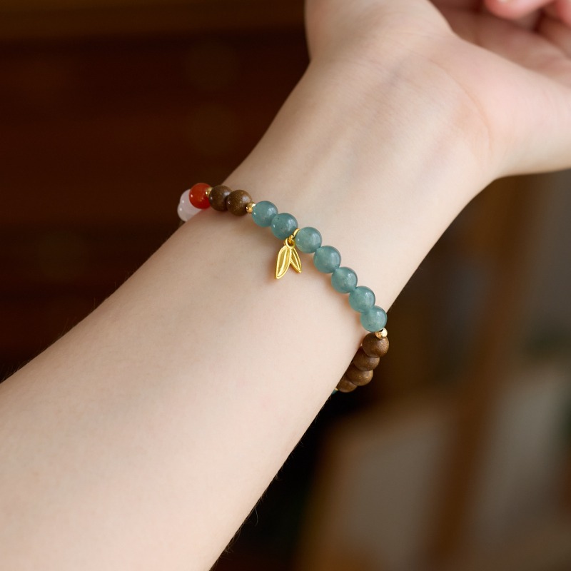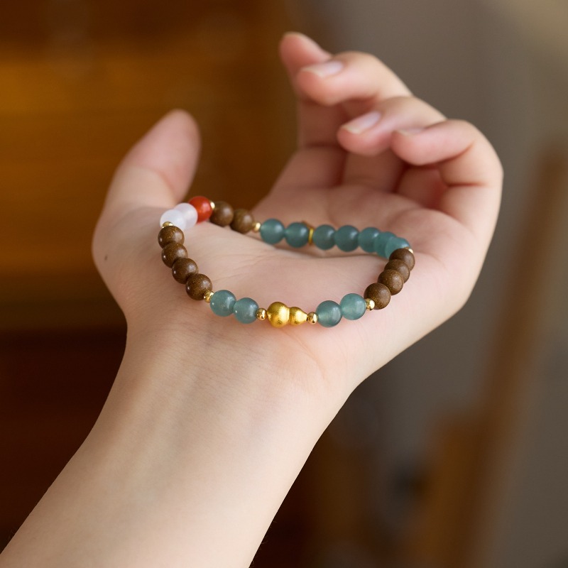| Name | 6MM Pear Hexiang Beads, Blue Water Chalcedony, White Agate, Red Agate Gourd Passepartout Bracelet
